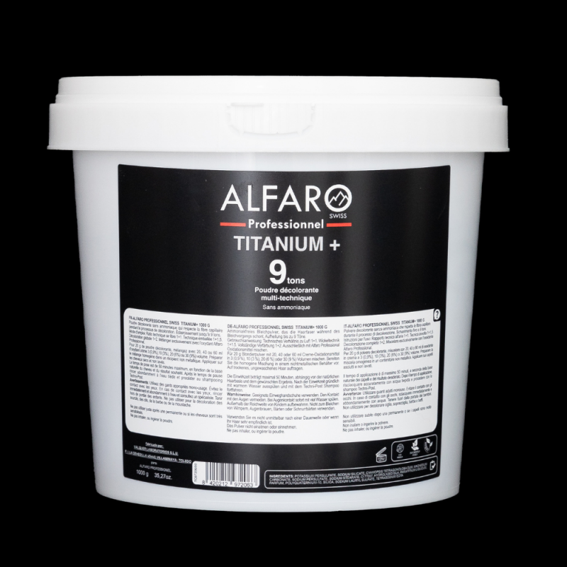 Gebrauchsanweisung: Mischverhältnis Freilufttechnik 1+1. Folien Technik 1+1,5. Globale Aufhellung 1+2. Ausschliesslich mit Alfaro Professional Oxydant mischen.